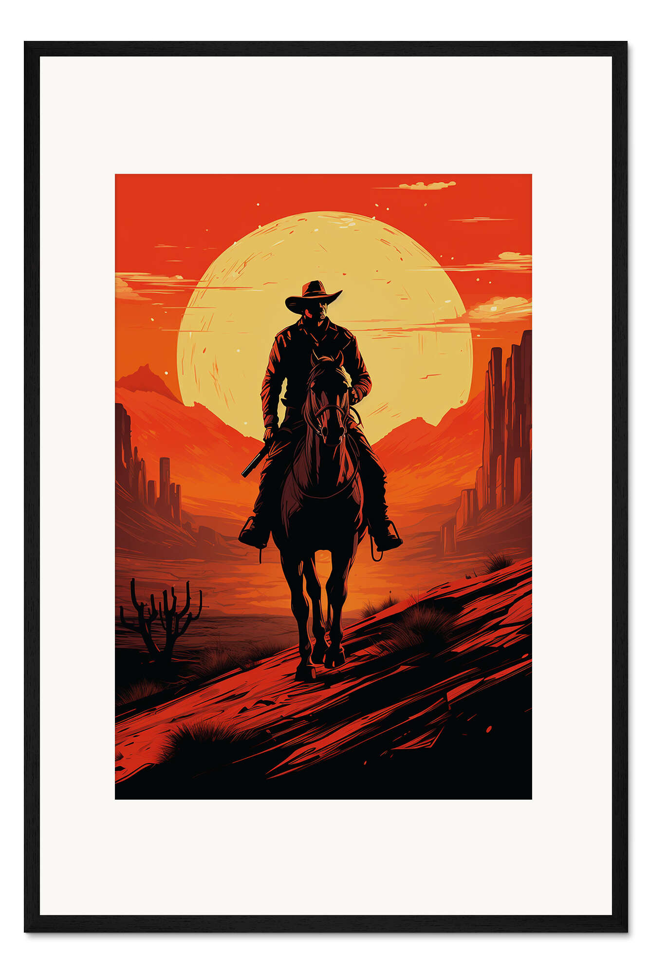 Posterlounge   Wandbilder   Rot   Durro Art   Gerahmter Kunstdruck Cowboy Silhouette