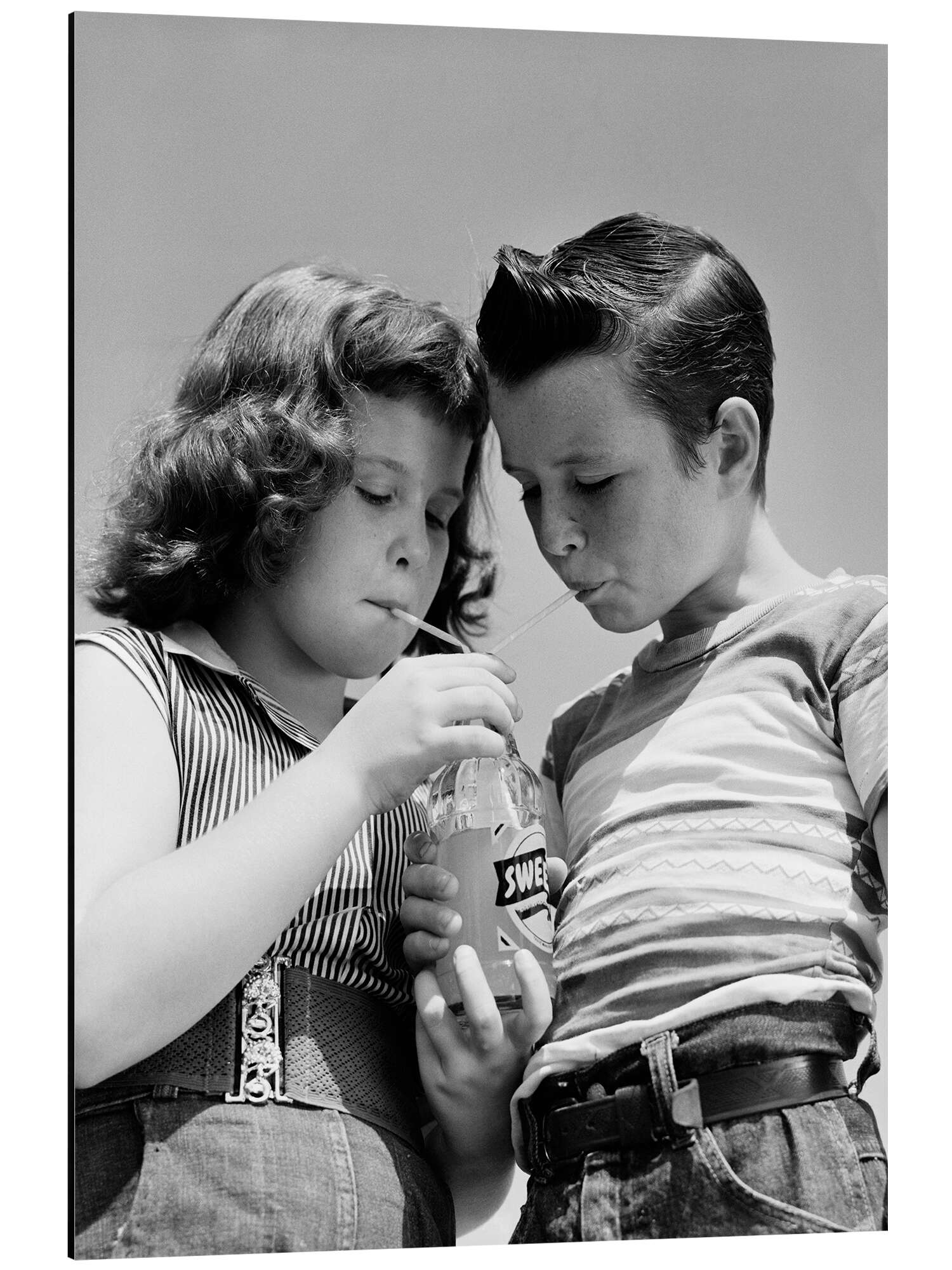 Posterlounge   Wandbilder   Vintage   Magnettafel Mädchen und Junge teilen sich eine Flasche Limonade