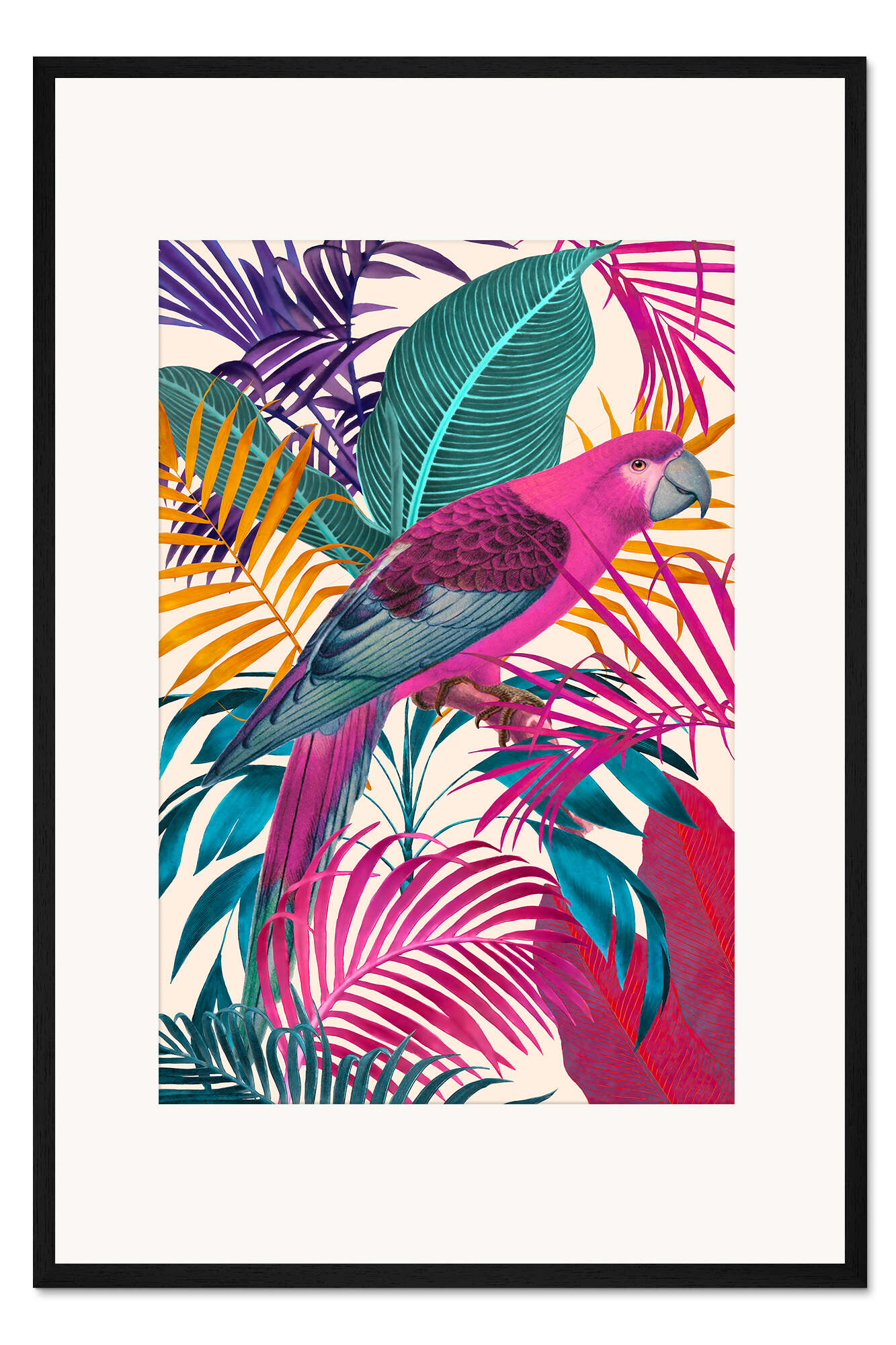 Posterlounge   Wandbilder   Bunt   Andrea Haase   Gerahmter Kunstdruck Ecstatic Jungle Of Colours - Pinke Papagei