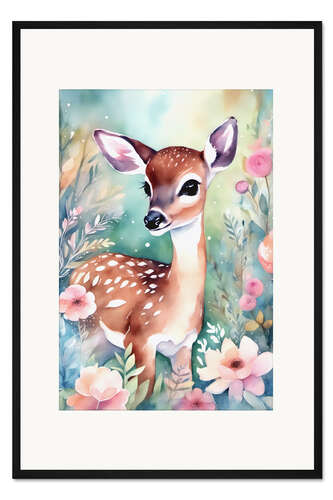 Posterlounge   Wandbilder   Illustration   Mango Art   Gerahmter Kunstdruck Rehkitz im Garten