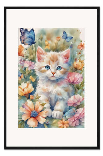 Posterlounge   Wandbilder   Illustration   Mango Art   Gerahmter Kunstdruck Kleine Katze im Garten