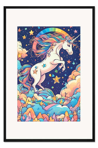 Posterlounge   Wandbilder   Illustration   Mango Art   Gerahmter Kunstdruck Einhorn im Traumland