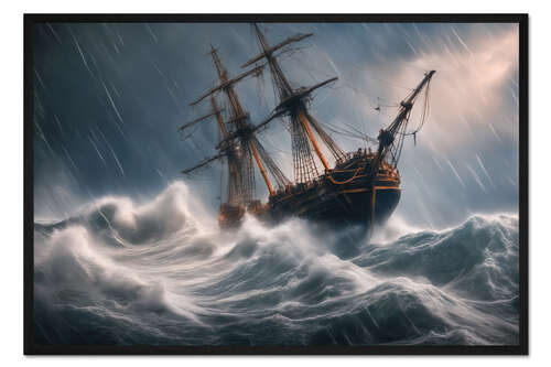 Posterlounge   Wandbilder   Illustration   Mango Art   Gerahmter Kunstdruck Schiffbruch im Sturm