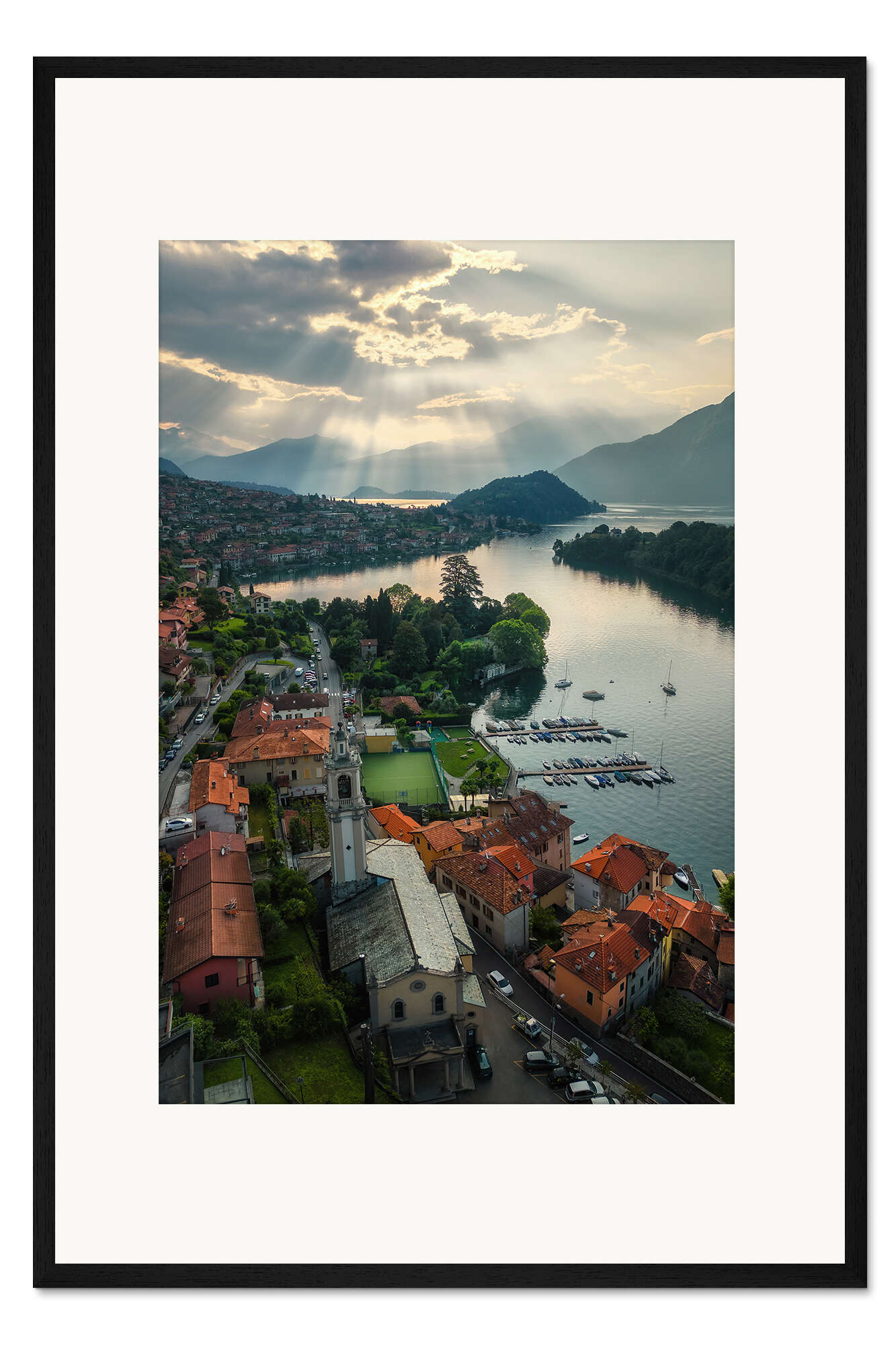 Posterlounge   Wandbilder   Fotografie   Martin Podt   Gerahmter Kunstdruck Comer See mit Sonnenstrahlen bei Sonnenaufgang