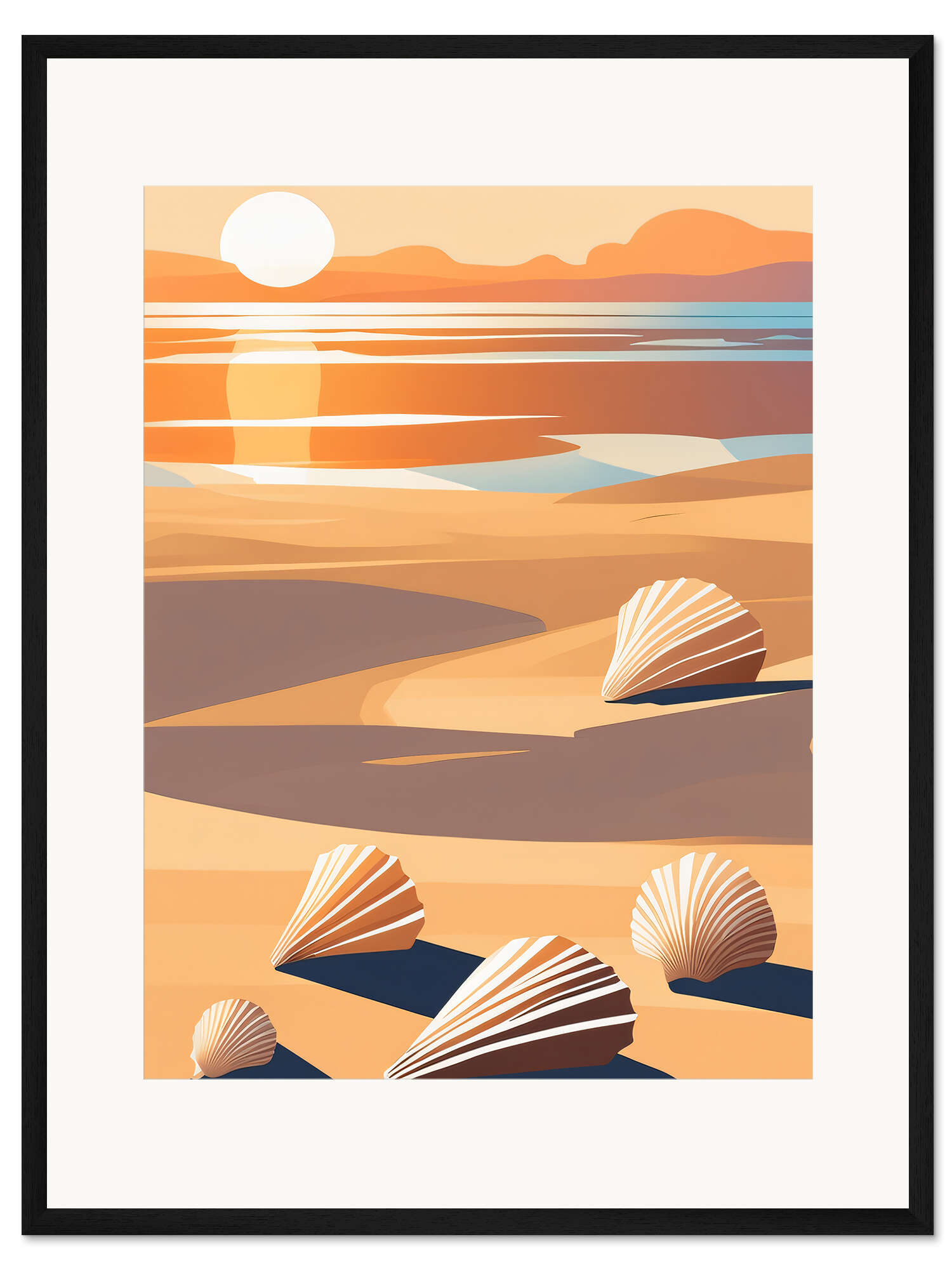 Posterlounge   Wandbilder   Orange   Gradient Grooves   Gerahmter Kunstdruck Abstrakte Muscheln am Strand