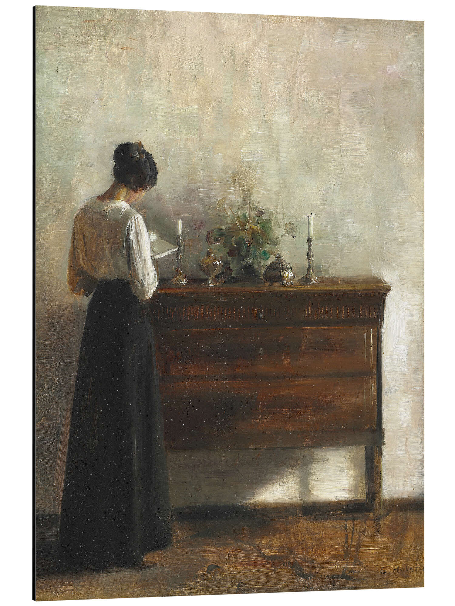 Posterlounge   Wandbilder   Menschen   Frauen   Carl Holsøe   Magnettafel Porträt einer Lesenden Frau vor einer Kommode