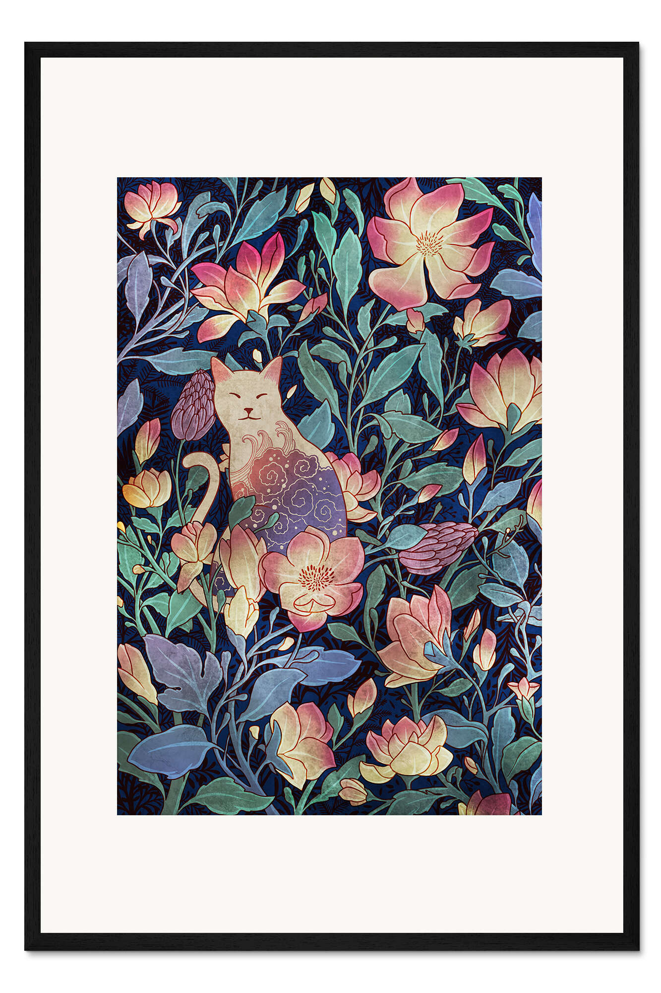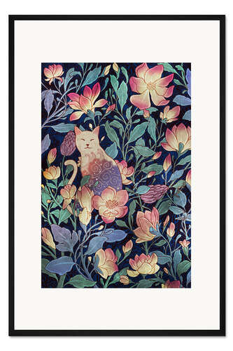 Posterlounge   Wandbilder   Illustration   syntetyc   Gerahmter Kunstdruck Katze und Magnolie