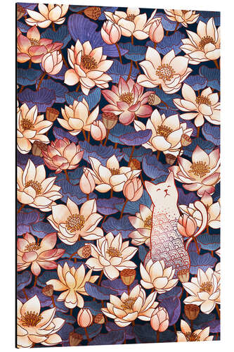 Posterlounge   Wandbilder   Illustration   syntetyc   Magnettafel Weiße Katze und Lotusblumen