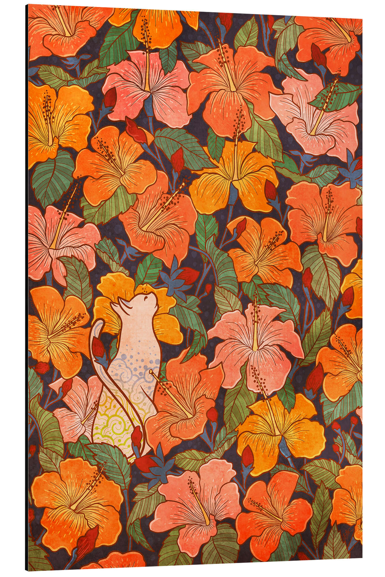 Posterlounge   Wandbilder   Illustration   syntetyc   Magnettafel Katze in einem Hibiskusfeld