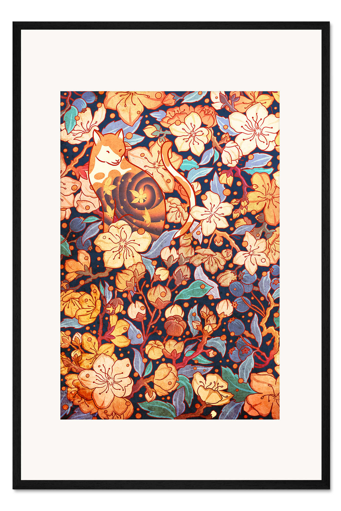 Posterlounge   Wandbilder   Illustration   syntetyc   Gerahmter Kunstdruck Neko und Kirschblüten