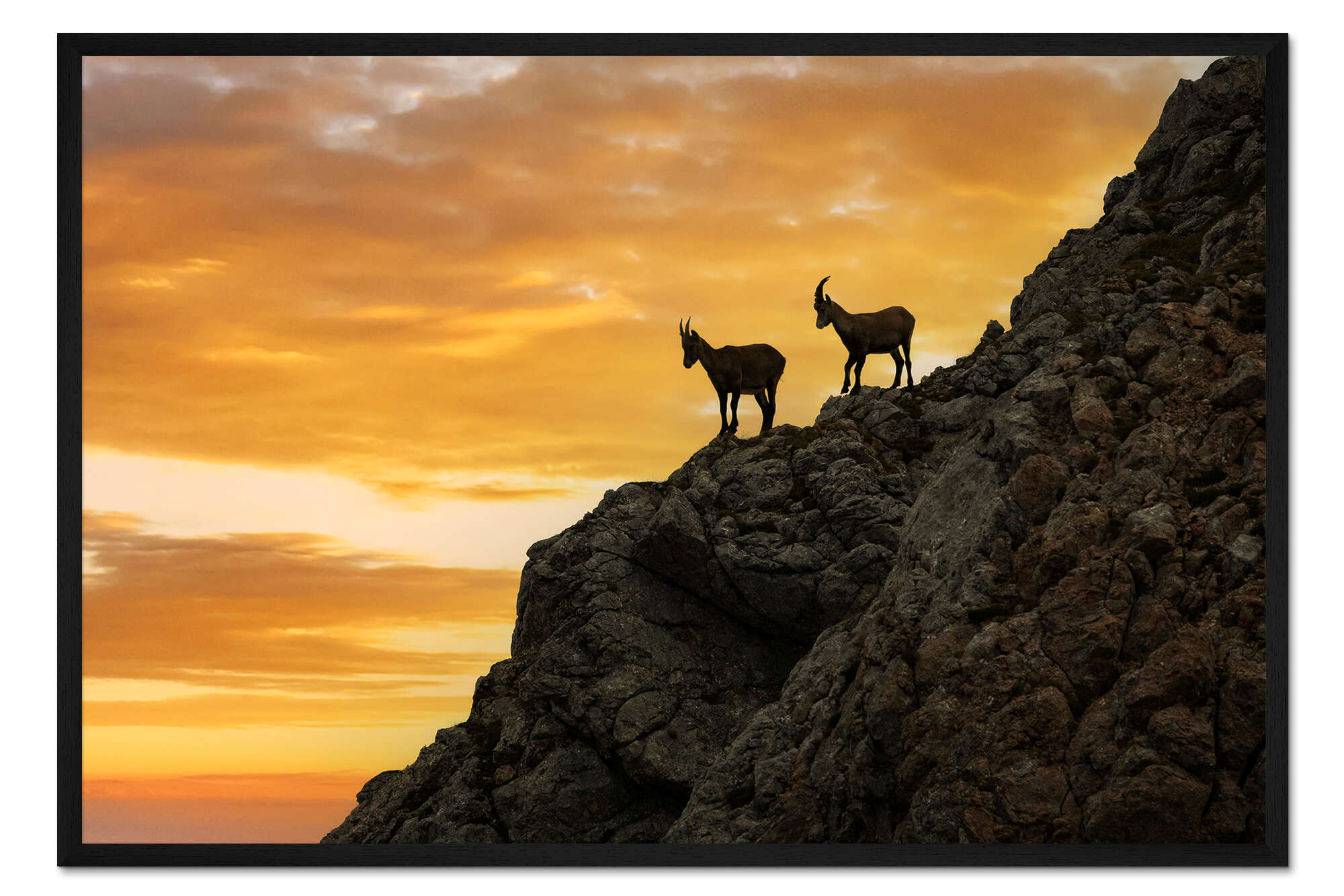 Posterlounge   Wandbilder   Fotografie   Dieter Meyrl   Gerahmter Kunstdruck Steinböcke bei Sonnenaufang