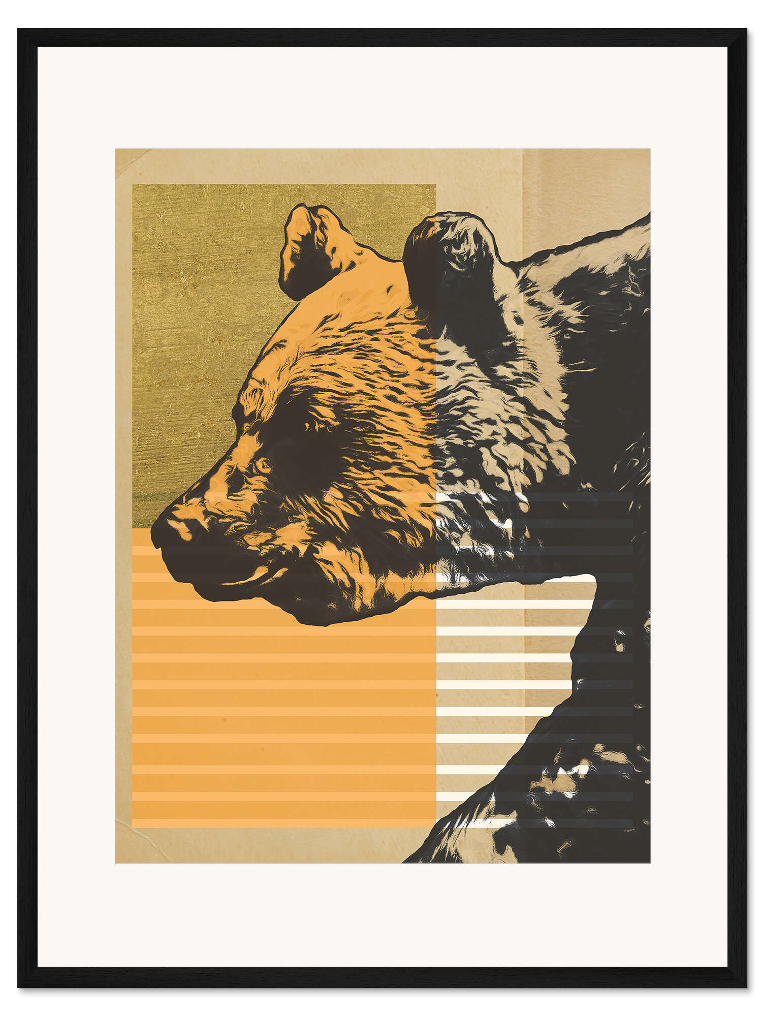Posterlounge   Wandbilder   Illustration   Alonzo Saunders   Gerahmter Kunstdruck Goldener Geometrischer Bär