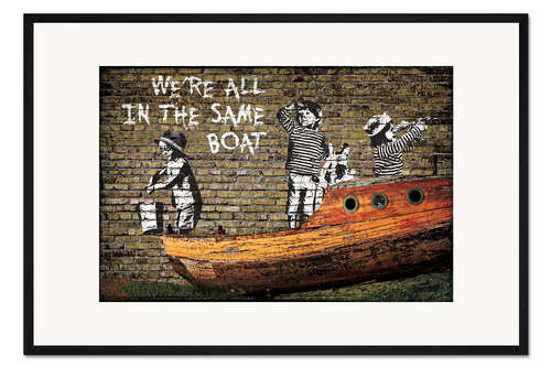 Posterlounge   Wandbilder   Illustration   Street Art   Pineapple Licensing   Gerahmter Kunstdruck Banksy - We're all in the Same Boat