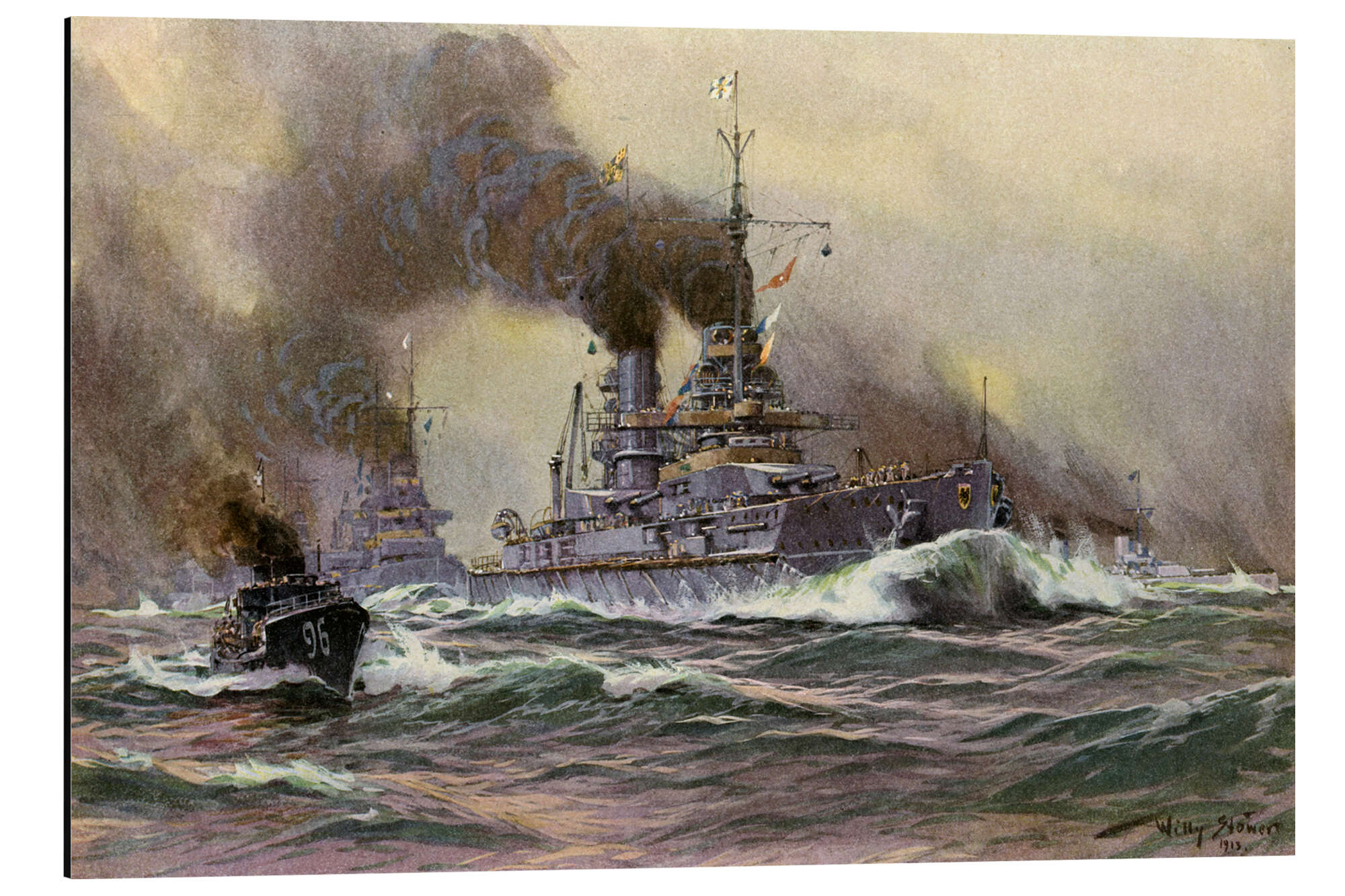 Posterlounge   Wandbilder   Illustration   Willy Stöwer   Magnettafel Linienschiffe der Deutschen Marine vor Kiel