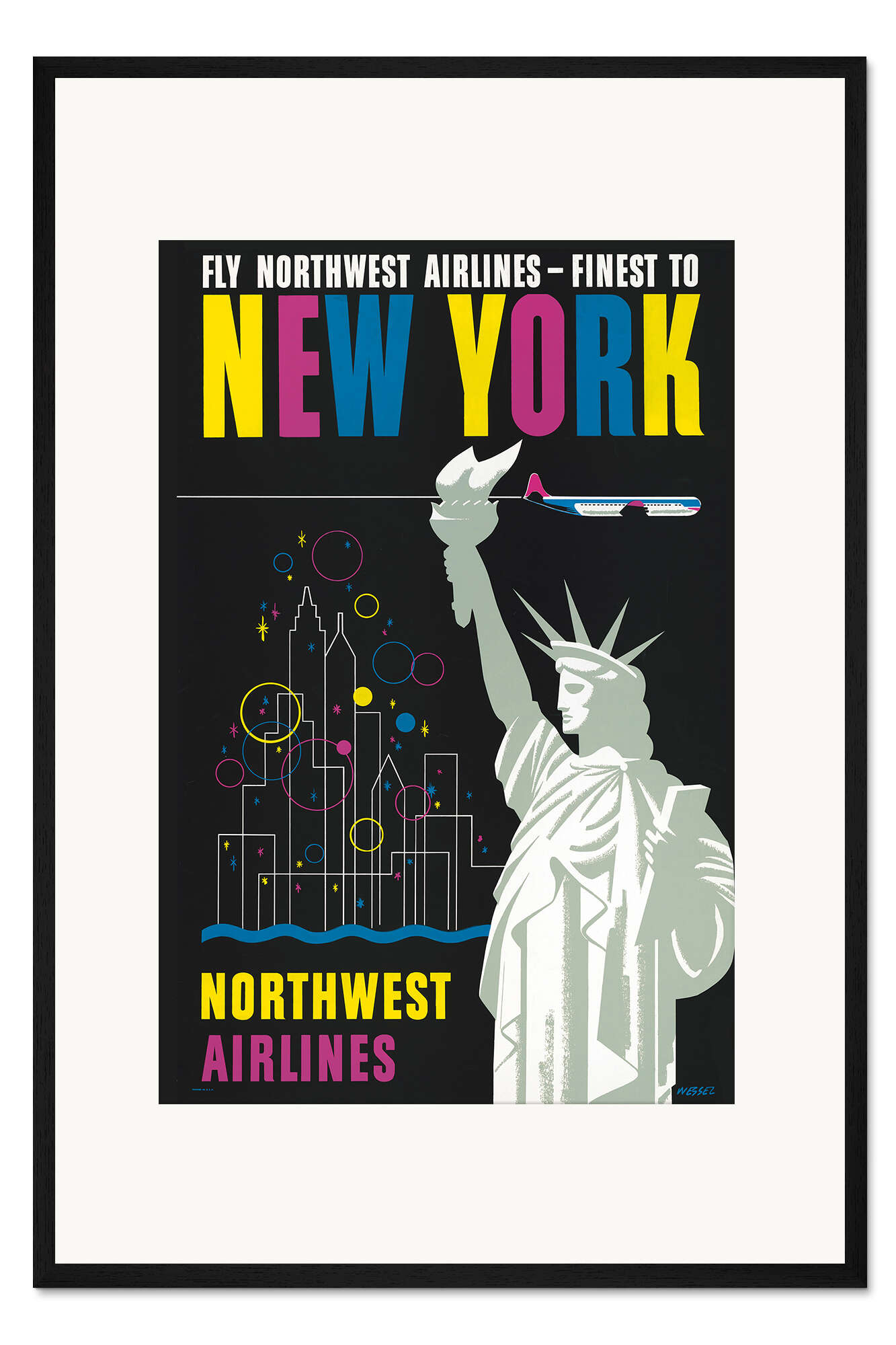 Posterlounge   Wandbilder   Vintage   Vintage Travel Collection   Gerahmter Kunstdruck Ein Flug mit Northwest Airlines nach New York