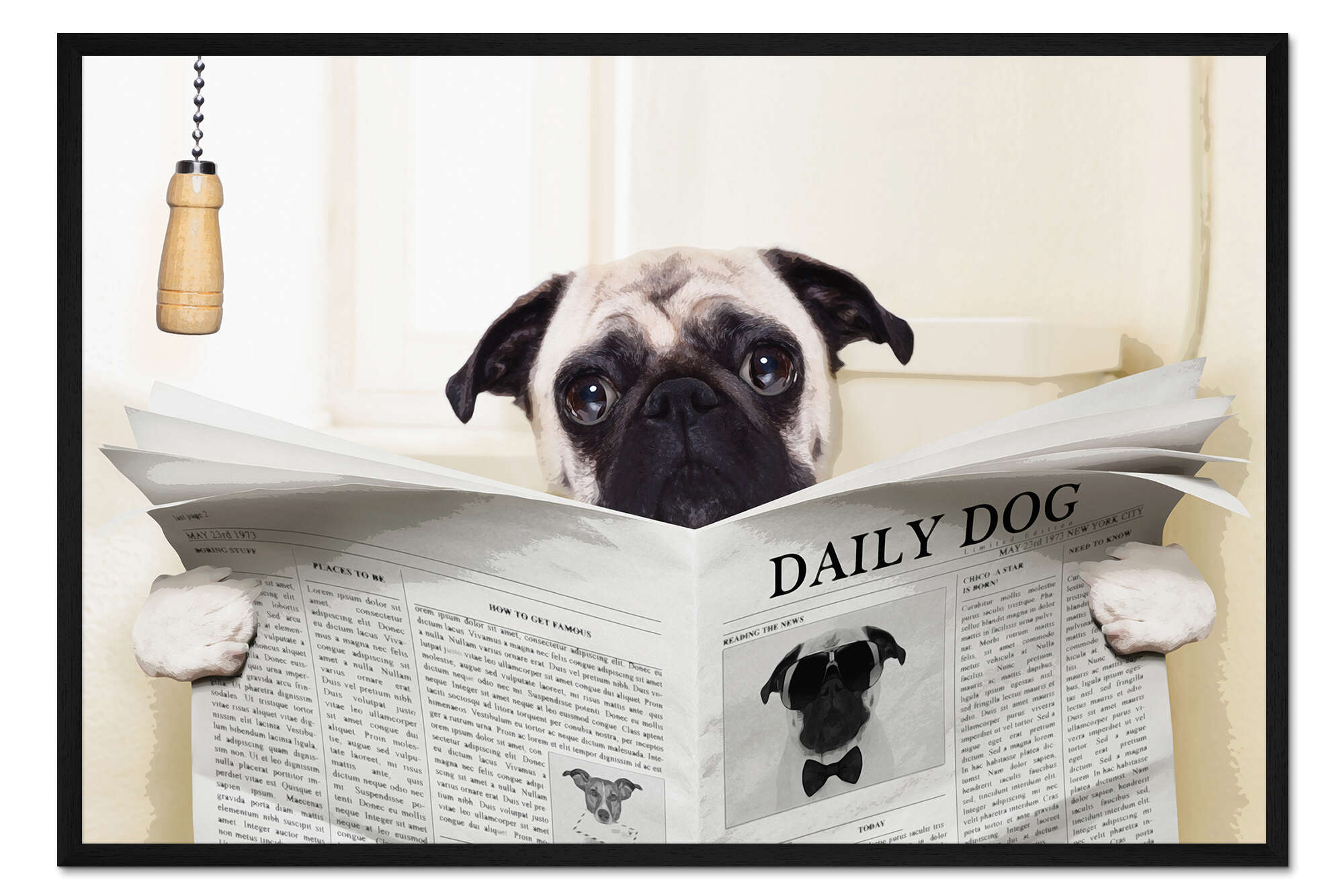Posterlounge   Wandbilder   Tiere   Haustiere   Hunde   Pineapple Licensing   Gerahmter Kunstdruck Mops auf der Toilette