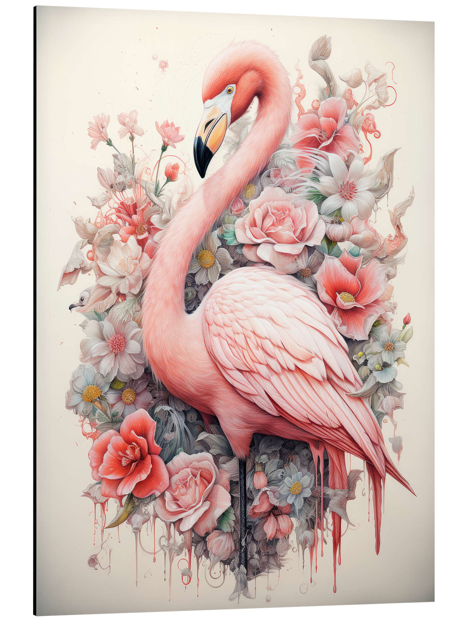 Flamingo in einem Rosenbusch