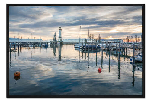 Posterlounge   Wandbilder   Blau   Christian Müringer   Gerahmter Kunstdruck Hafen von Lindau am Bodensee im Winter