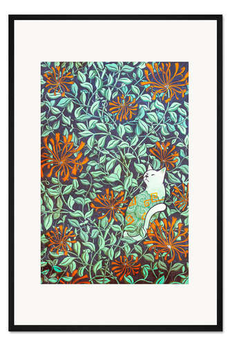 Posterlounge   Wandbilder   Illustration   syntetyc   Gerahmter Kunstdruck Katze und Geißblattblüten