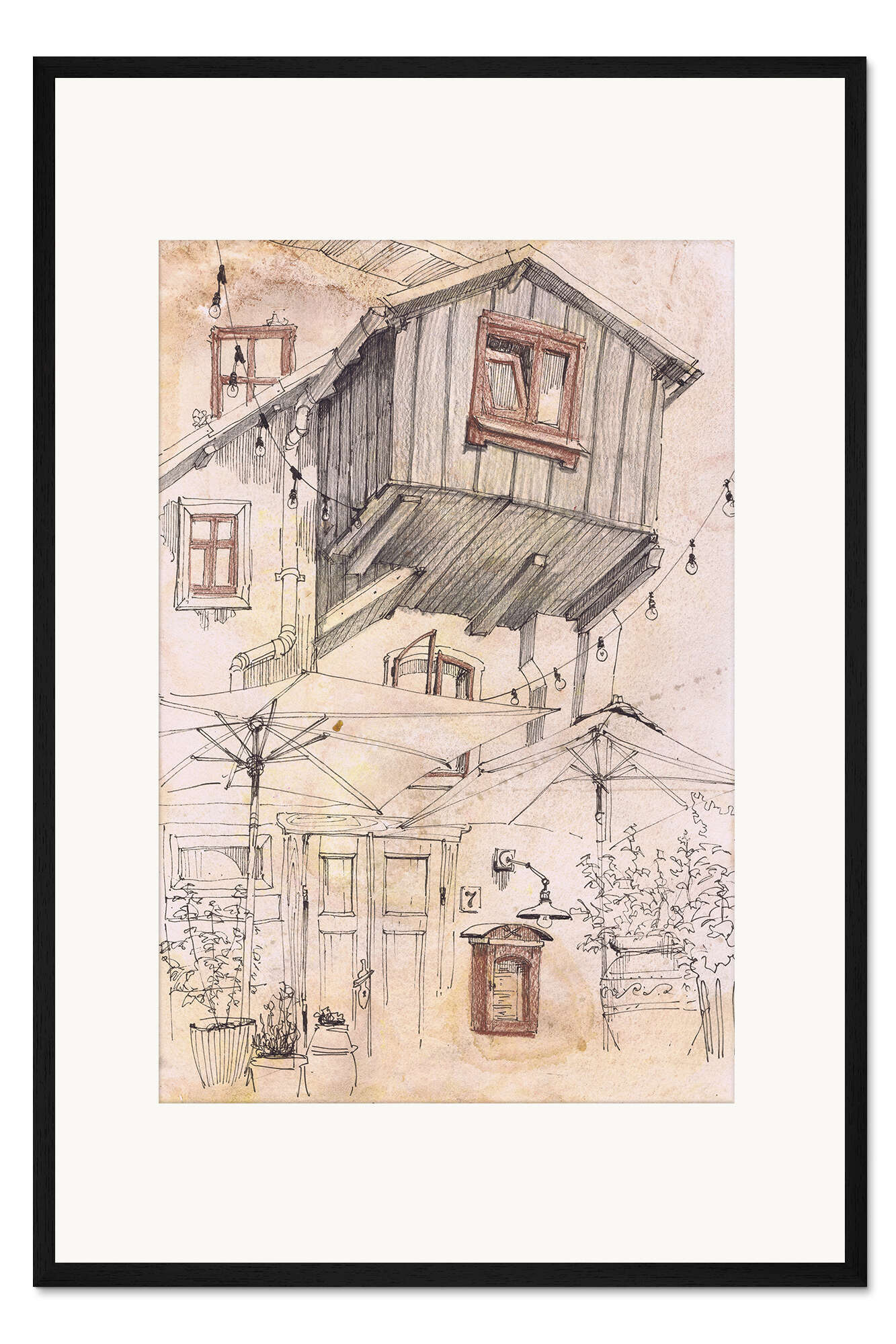 Posterlounge   Wandbilder   Beige   Samira Yanushkova   Gerahmter Kunstdruck Gelassenes Vintage-Dorf