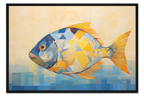 Posterlounge   Wandbilder   Blau   PetalsPrintsDesign   Gerahmter Kunstdruck Geometrischer Fisch II