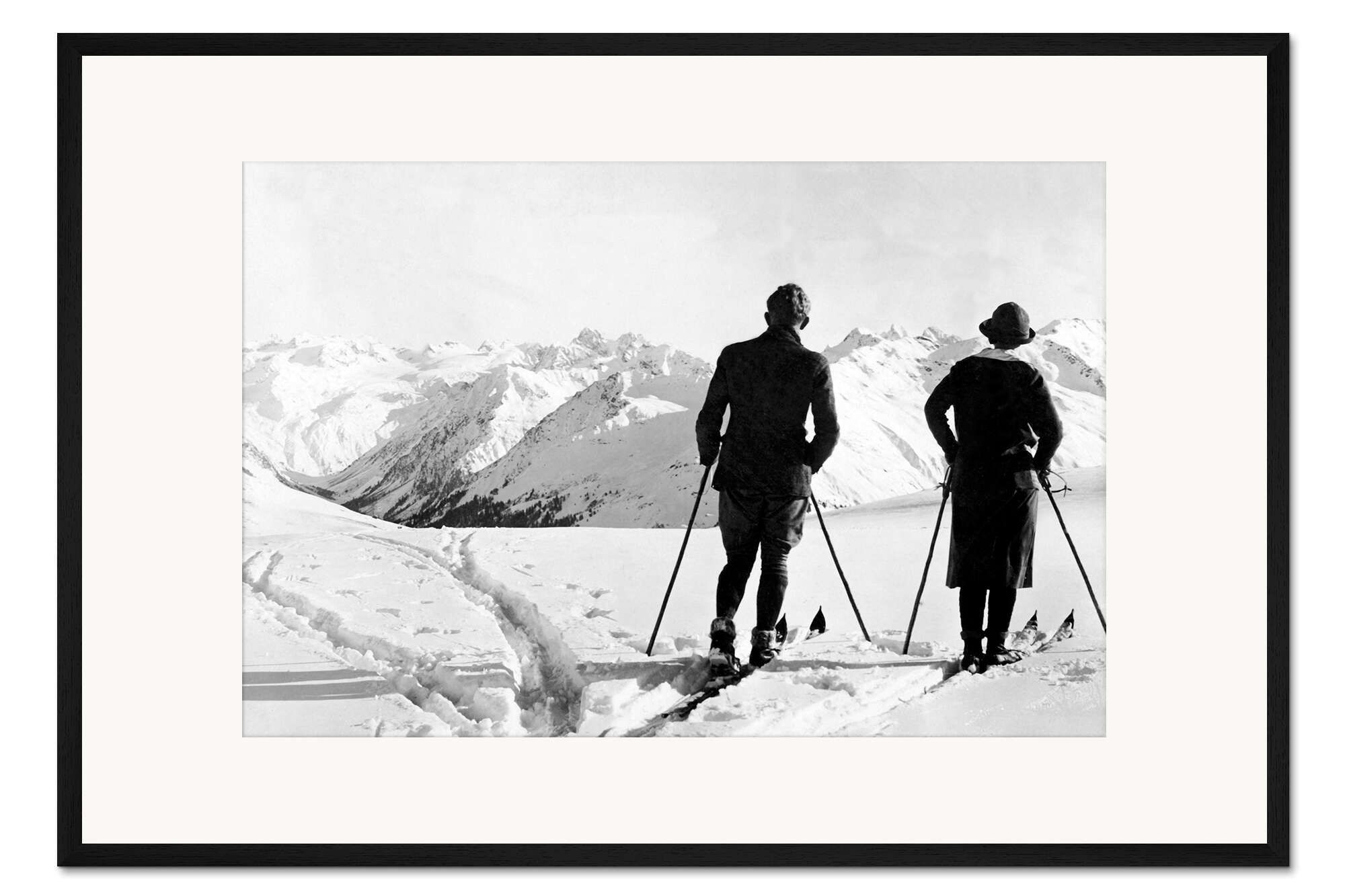 Posterlounge   Wandbilder   Natur   Winter   Vintage Ski Collection   Gerahmter Kunstdruck Zwei Skifahrer bewundern die Aussicht