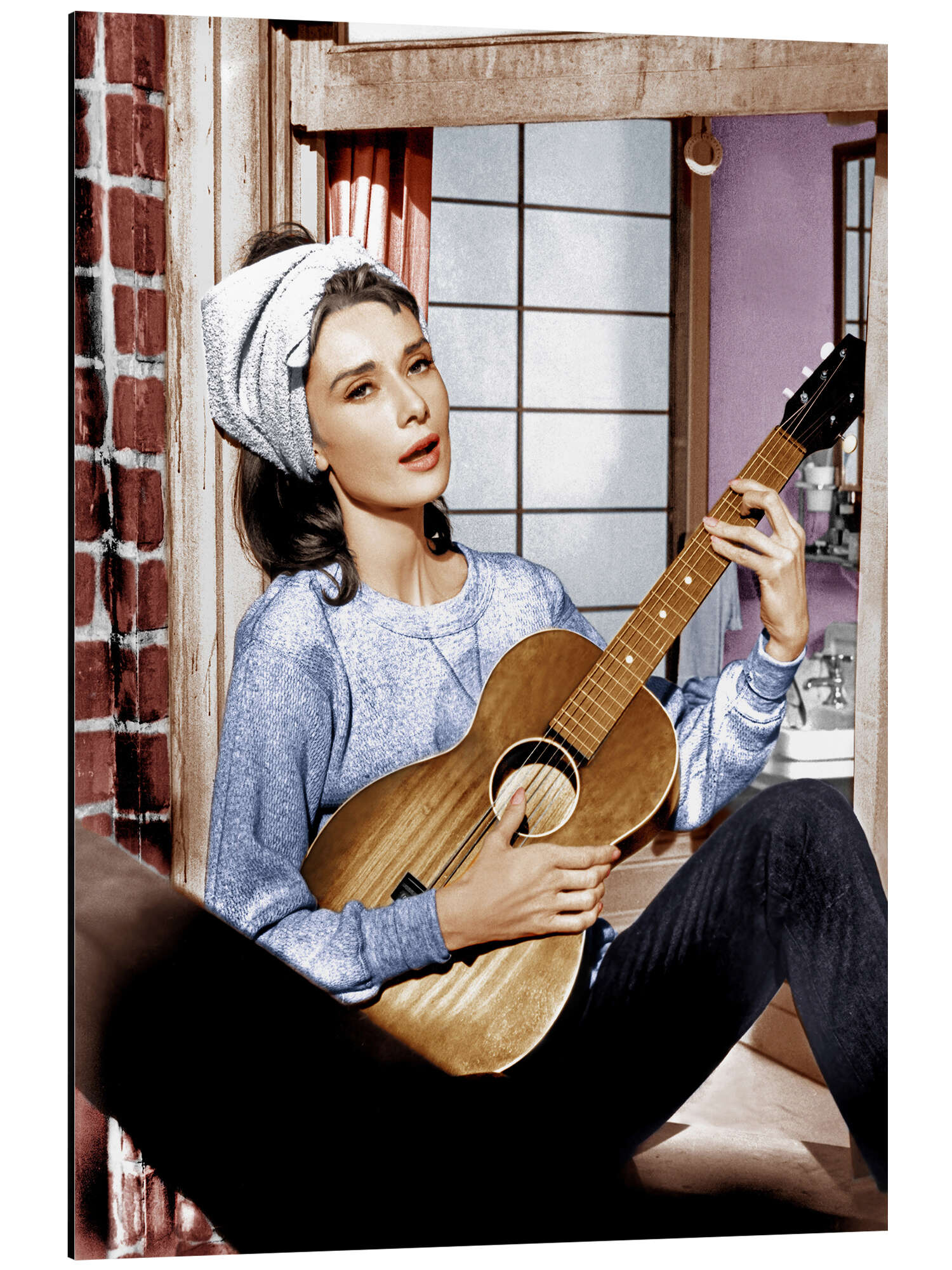 Posterlounge   Wandbilder   Menschen   Porträt   Magnettafel Audrey Hepburn spielt die Gitarre in "Frühstück bei Tiffany's"