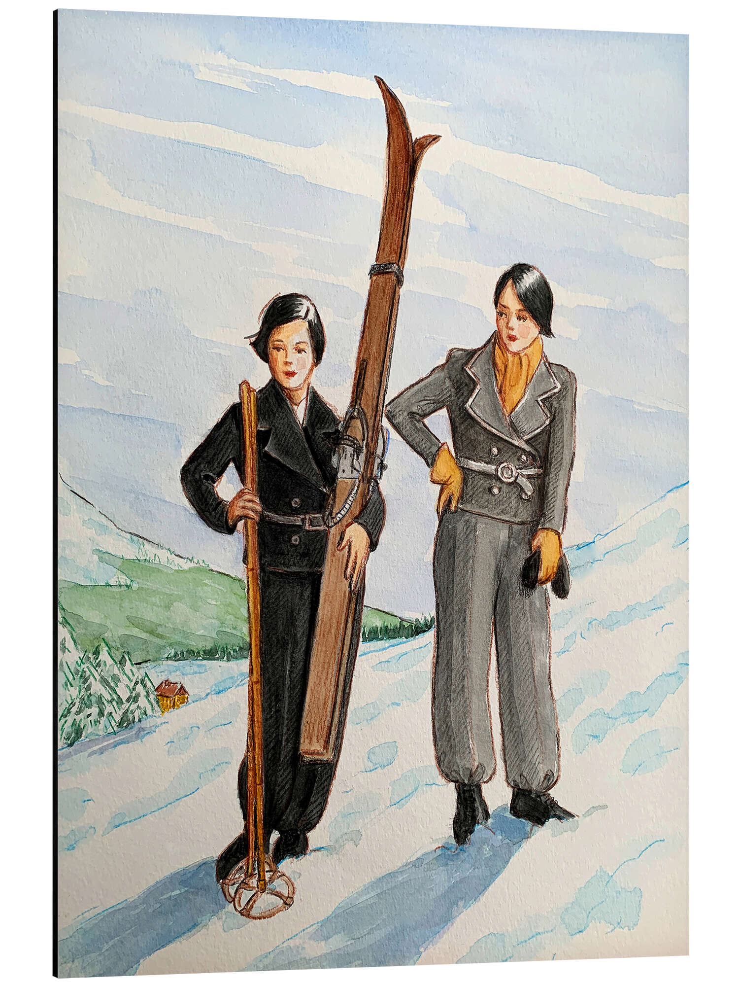 Magnettafel Zwei Skifahrerinnen Posieren