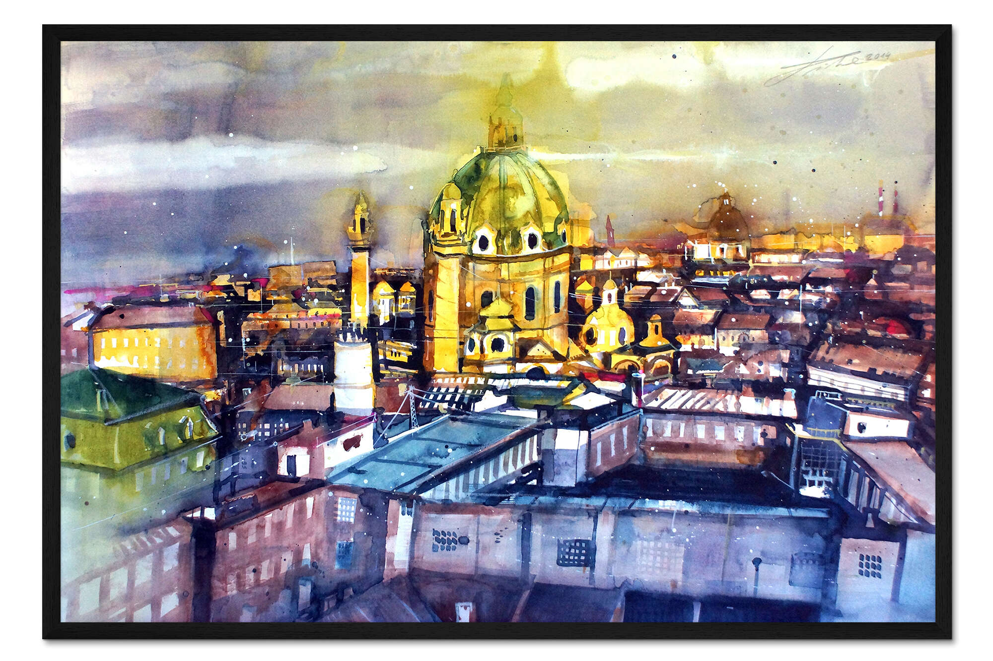 Posterlounge   Wandbilder   Malerei   Aquarell Malerei   Johann Pickl   Gerahmter Kunstdruck Wien Blick zur Karlskirche
