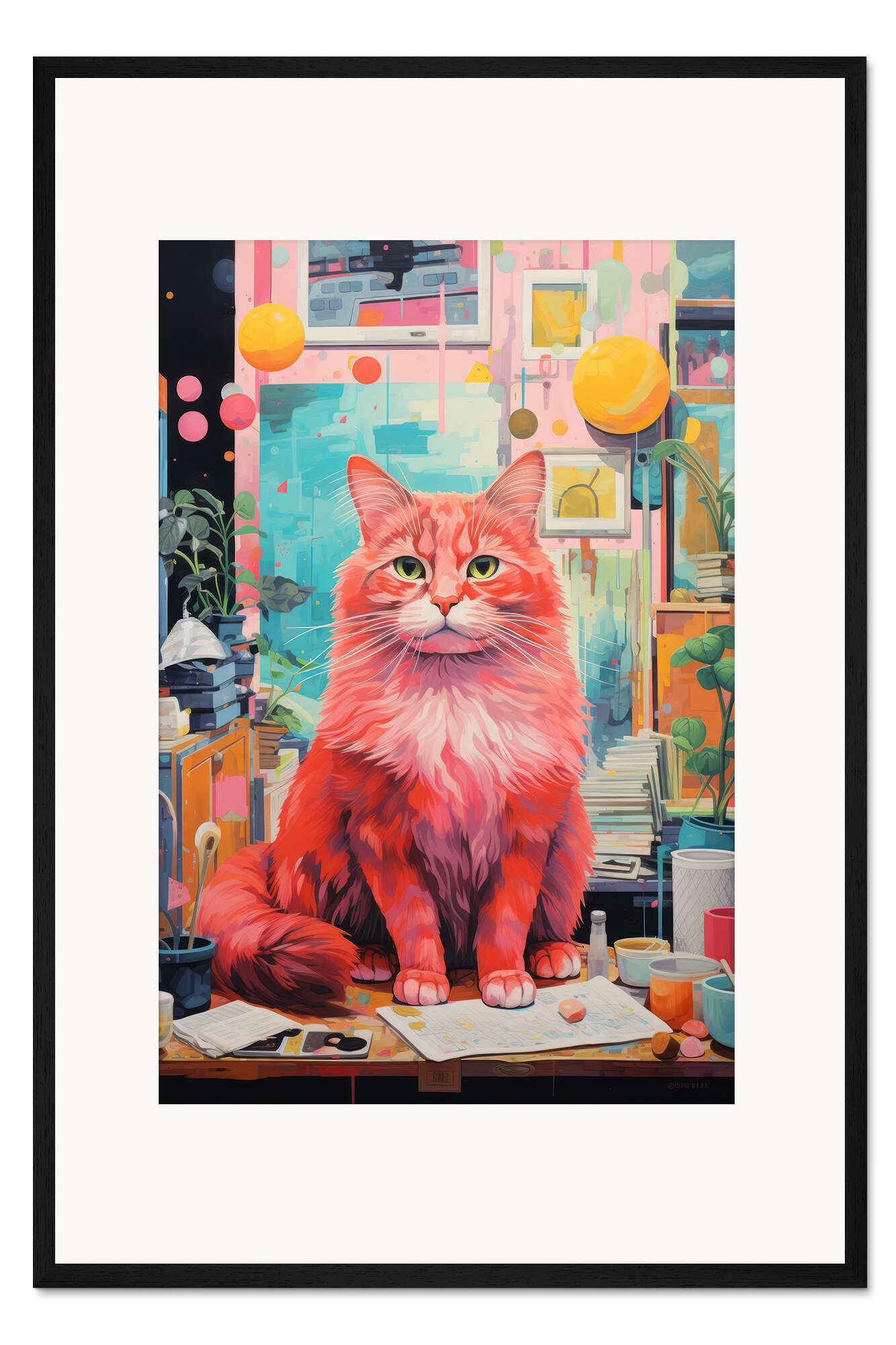 Posterlounge   Wandbilder   Tiere   Haustiere   Katzen   DejaReve   Gerahmter Kunstdruck Katze auf Künstlerpult