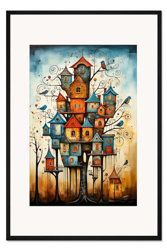 Posterlounge   Wandbilder   Malerei   Peter Roder   Gerahmter Kunstdruck Eine Symphonie aus Bunten Vogelhäusern