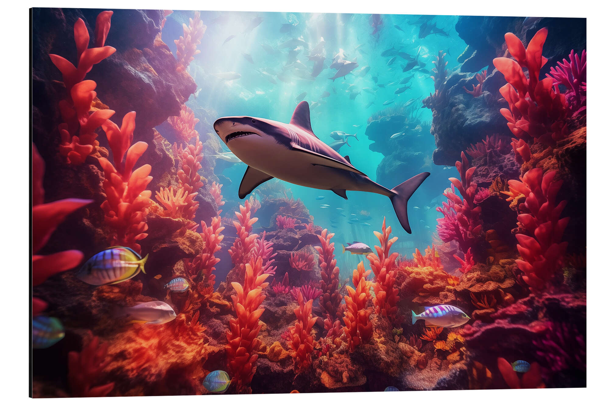 Posterlounge   Wandbilder   Fotografie   Fotocollage   Michael artefacti   Magnettafel Hai in einem Korallenwald