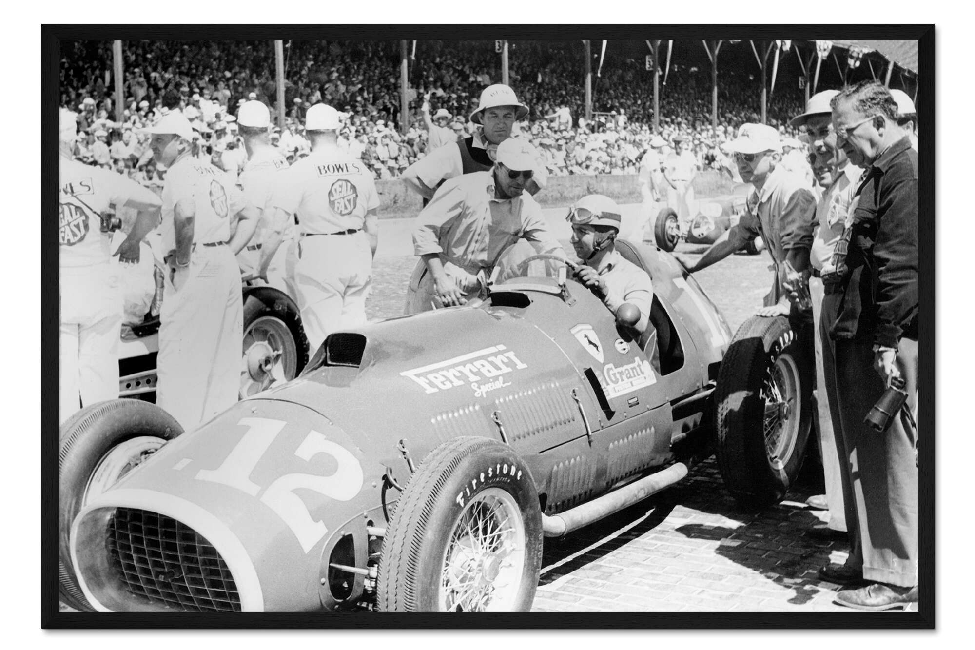 Posterlounge   Wandbilder   Fahrzeuge   Autos   Gerahmter Kunstdruck Alberto Ascari am Steuer eines 4,5-Liter-Ferrari, Indianapolis, 1952