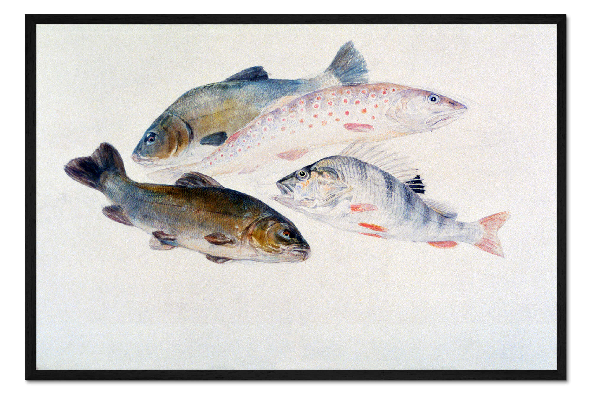 Posterlounge   Wandbilder   Malerei   Aquarell Malerei   Joseph Mallord William Turner   Gerahmter Kunstdruck Studie über Fische: Zwei Schleien, eine Forelle und ein Barsch