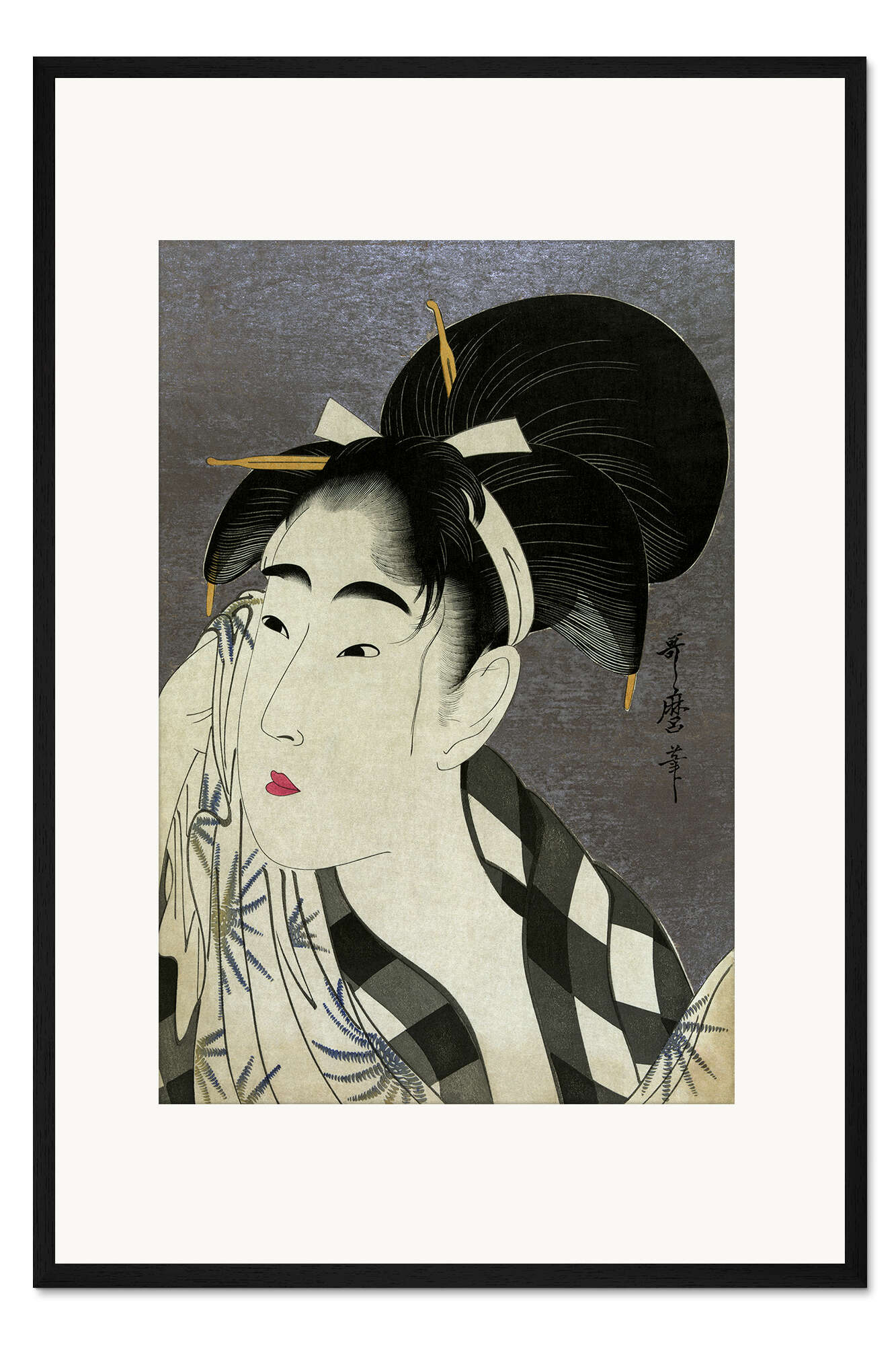 Posterlounge   Wandbilder   Japandi   Kitagawa Utamaro   Gerahmter Kunstdruck Frau wischt sich den Schweiß ab