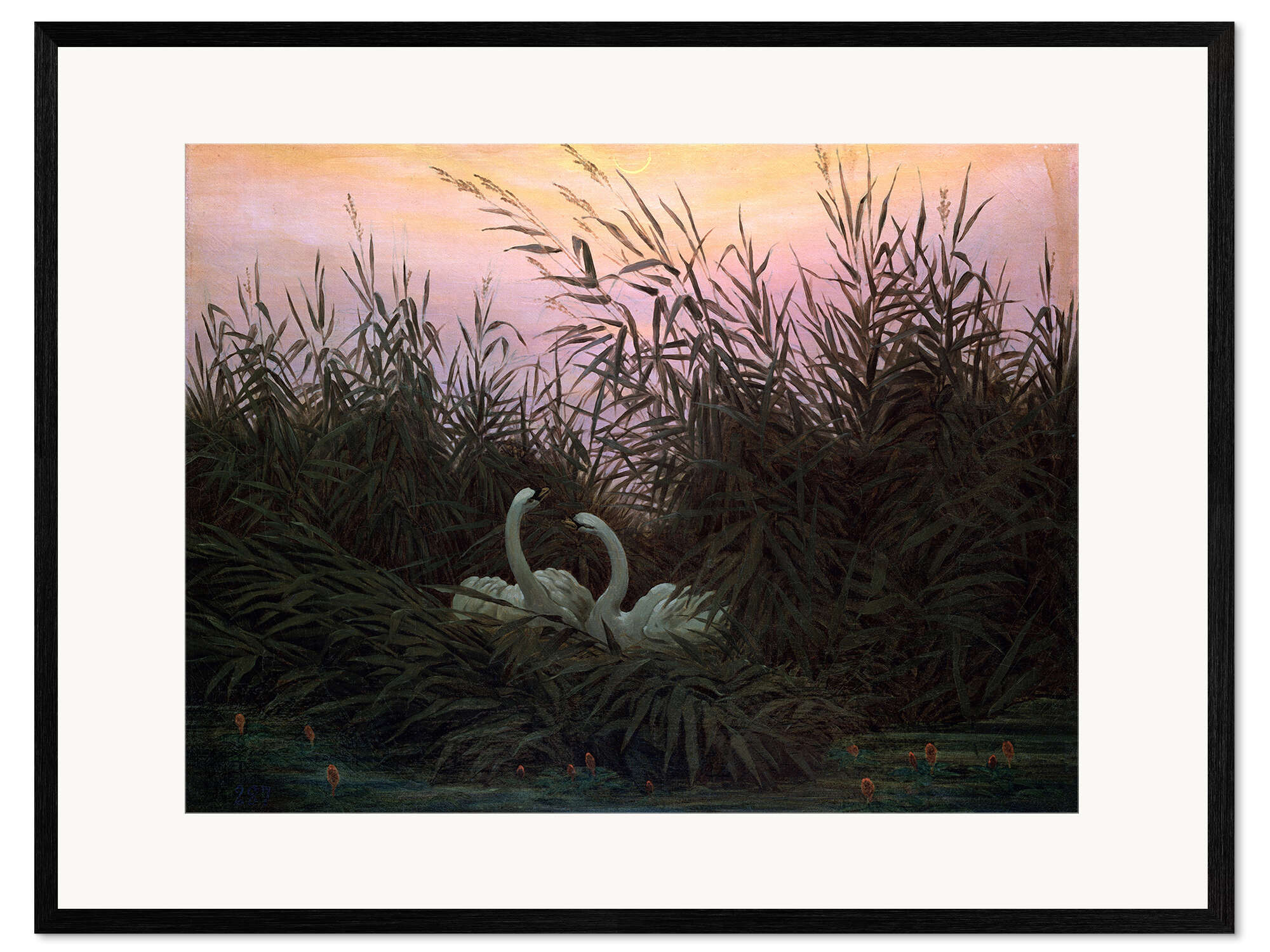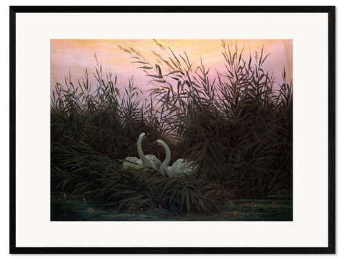 Gerahmter Kunstdruck Schwäne im Schilf