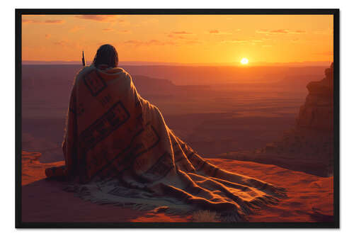 Posterlounge   Wandbilder   Orange   Michael artefacti   Gerahmter Kunstdruck Ein amerikanischer Ureinwohner mit einer Navajo-Decke