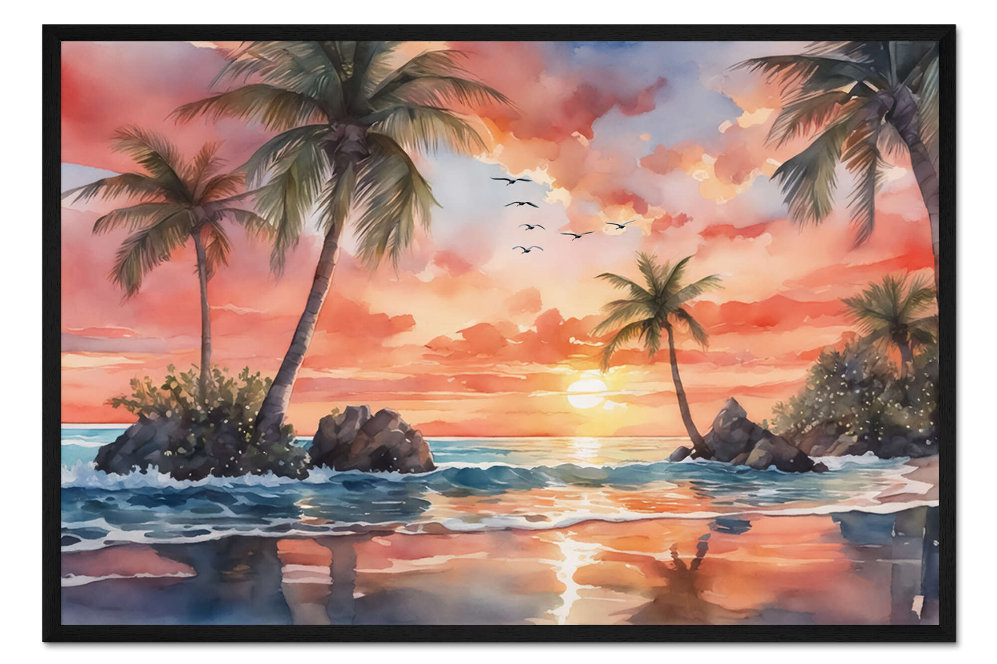 Posterlounge   Wandbilder   Malerei   Aquarell Malerei   Mango Art   Gerahmter Kunstdruck Insel-Sonnenuntergang