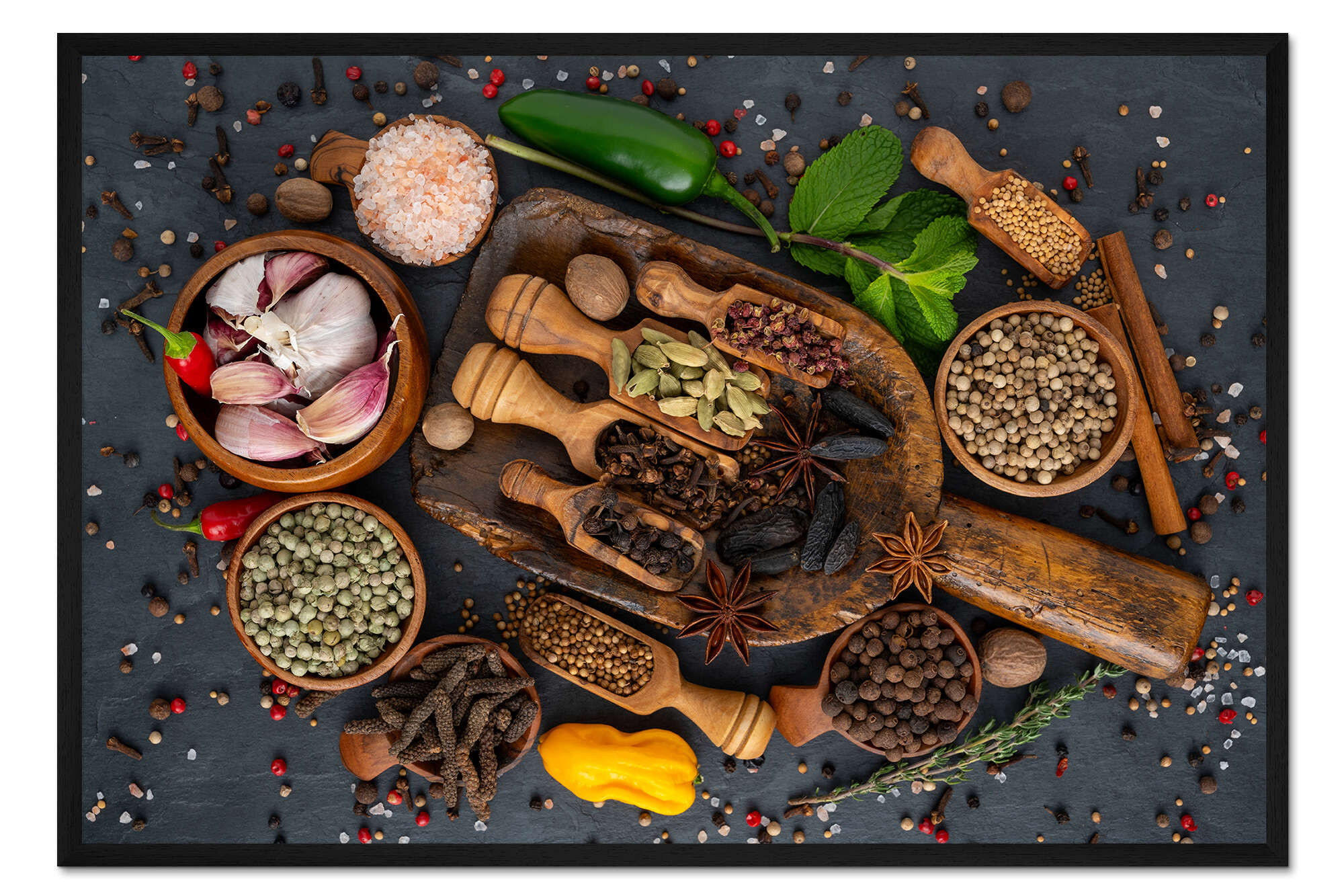 Posterlounge   Wandbilder   Fotografie   Thomas Klee   Gerahmter Kunstdruck Gewürze und Kräuter auf Schieferplatte