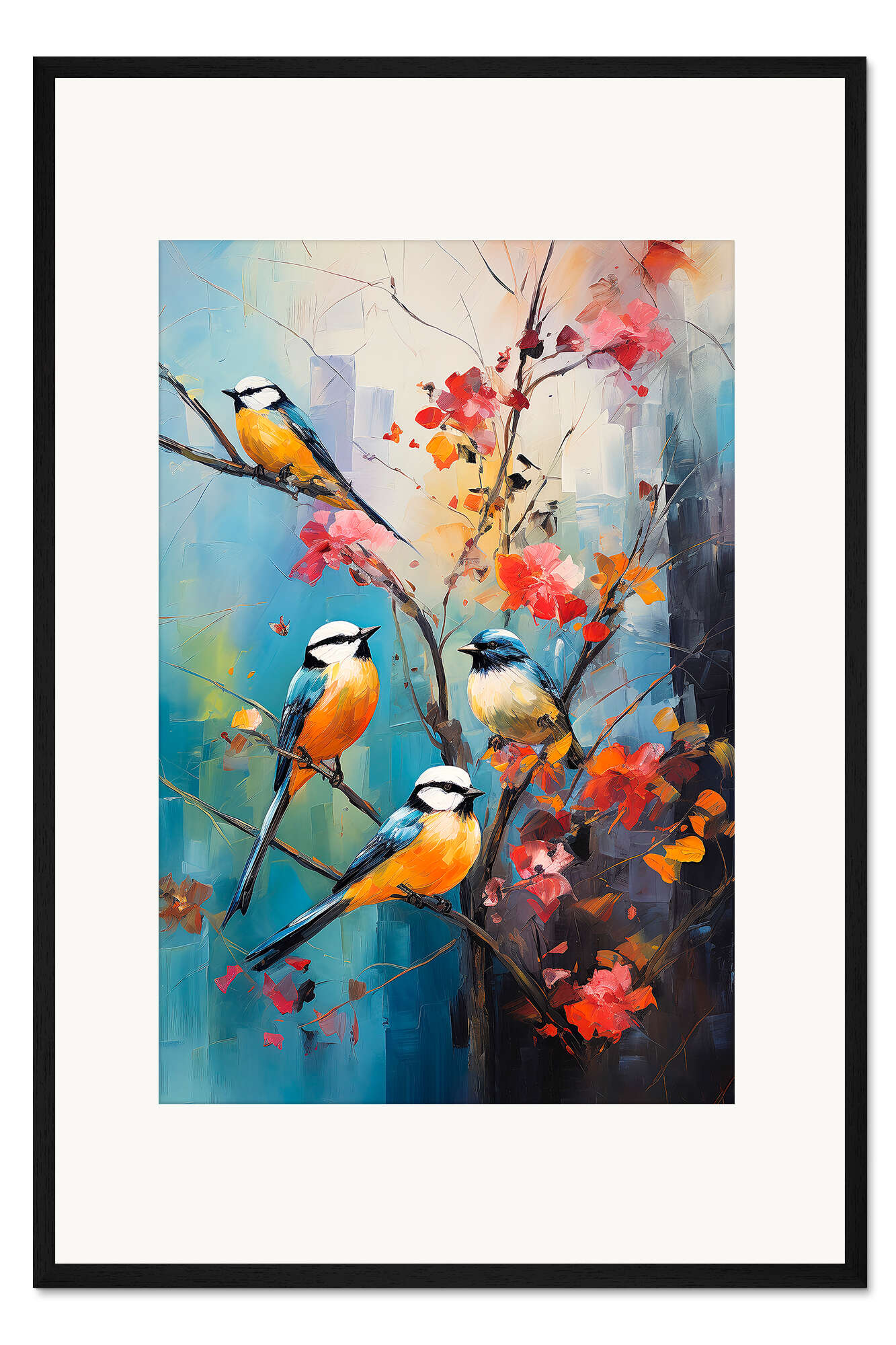 Posterlounge   Wandbilder   Tiere   Vögel   Peter Roder   Gerahmter Kunstdruck Meisen auf Blütenzweig