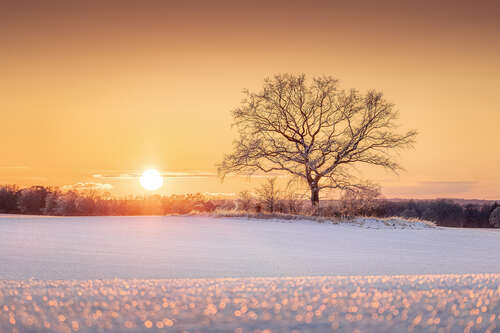 Magnettafel Einsamer Baum in winterlicher Landschaft