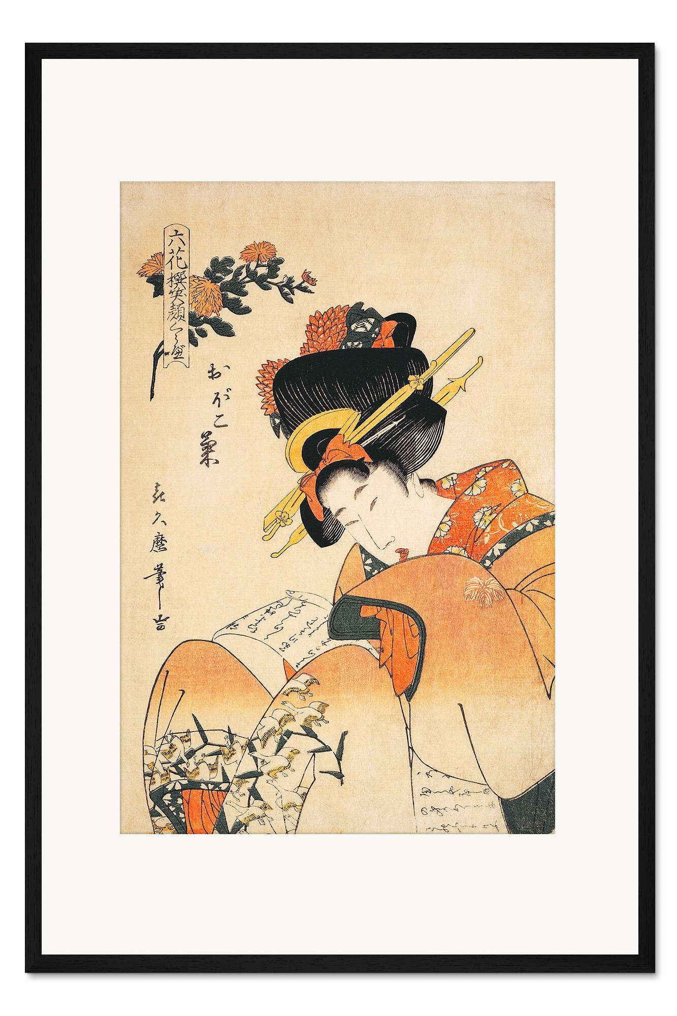 Posterlounge   Wandbilder   Malerei   Asiatische Kunst   Gerahmter Kunstdruck Die Kurtisane Obokokiku liest einen Brief, Kitagawa Tsukimaro
