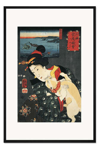 Posterlounge   Wandbilder   Malerei   Asiatische Kunst   Utagawa Kuniyoshi   Gerahmter Kunstdruck Junge Frau mit einer Katze im Arm