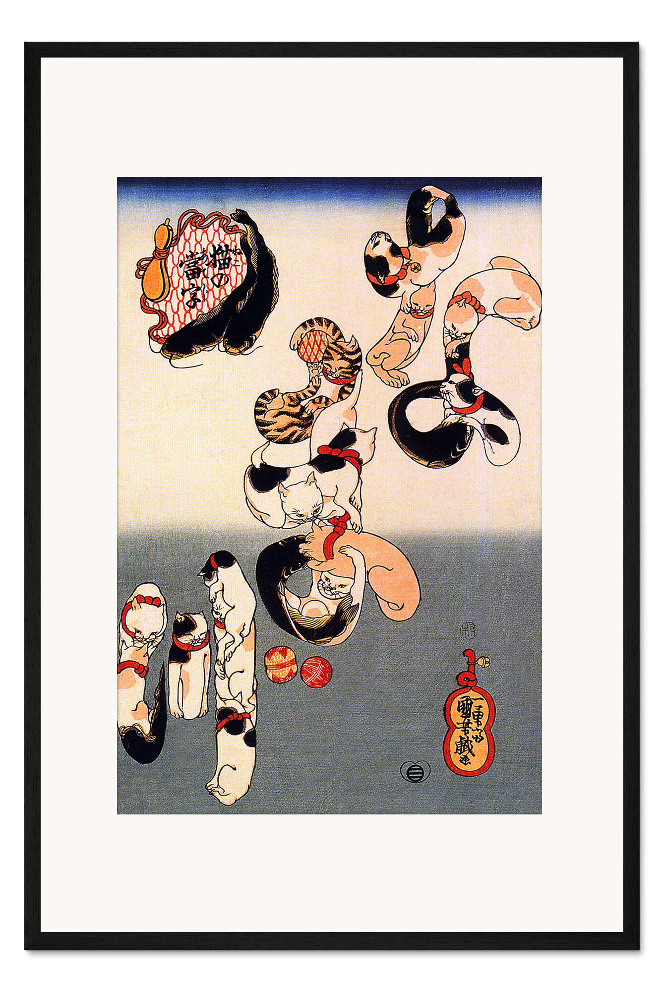 Posterlounge   Wandbilder   Tiere   Haustiere   Katzen   Utagawa Kuniyoshi   Gerahmter Kunstdruck Katzen als japanisches Kanji-Zeichen "Wels" Namazu