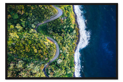 Posterlounge   Wandbilder   Blau   Matteo Colombo   Gerahmter Kunstdruck Straße nach Hana, Hawaii