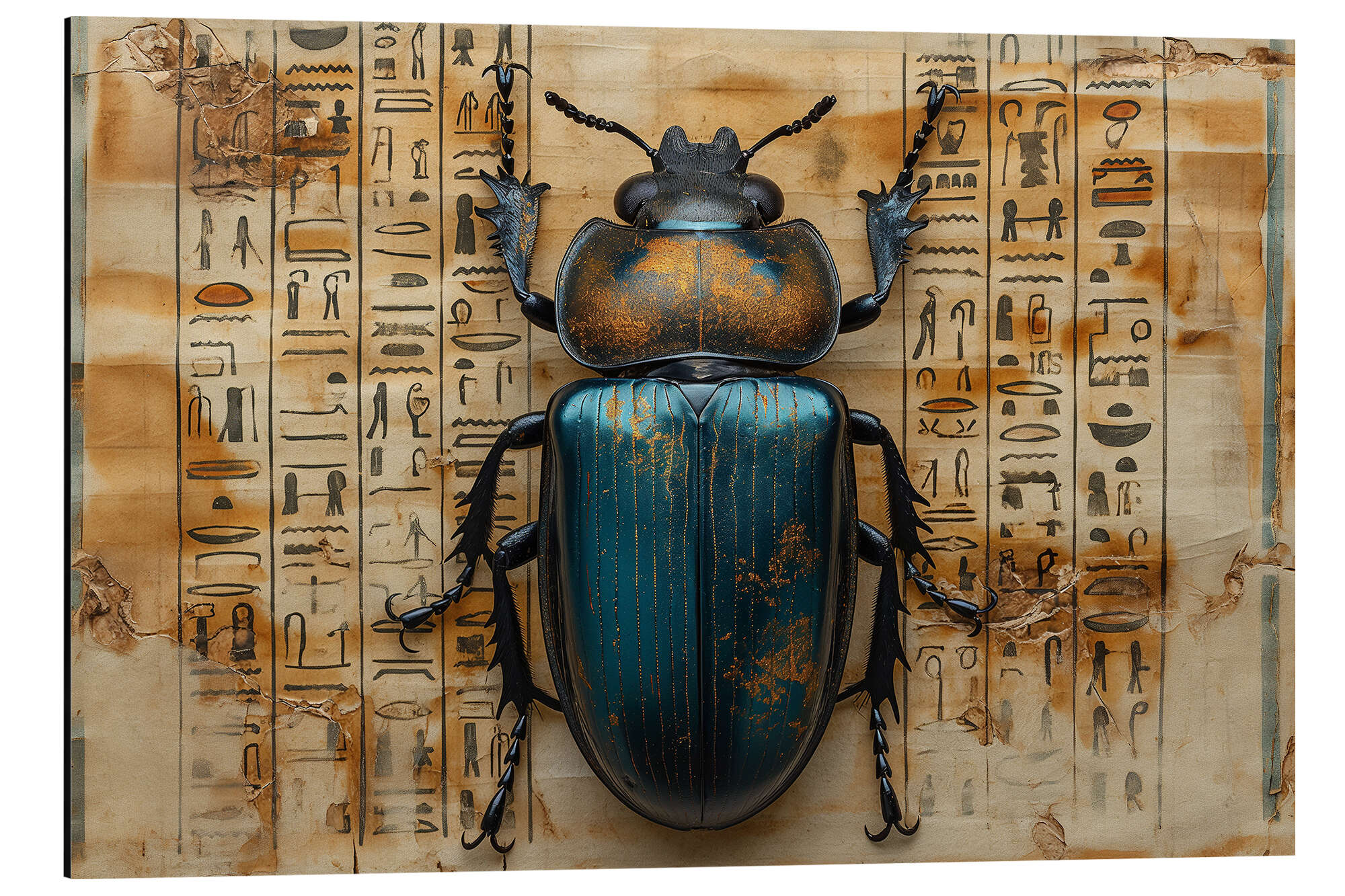 Posterlounge   Wandbilder   Lernen & Wissen   Antike   Michael artefacti   Magnettafel Strahlender blauer Skarabäus - eine alte Glyphe