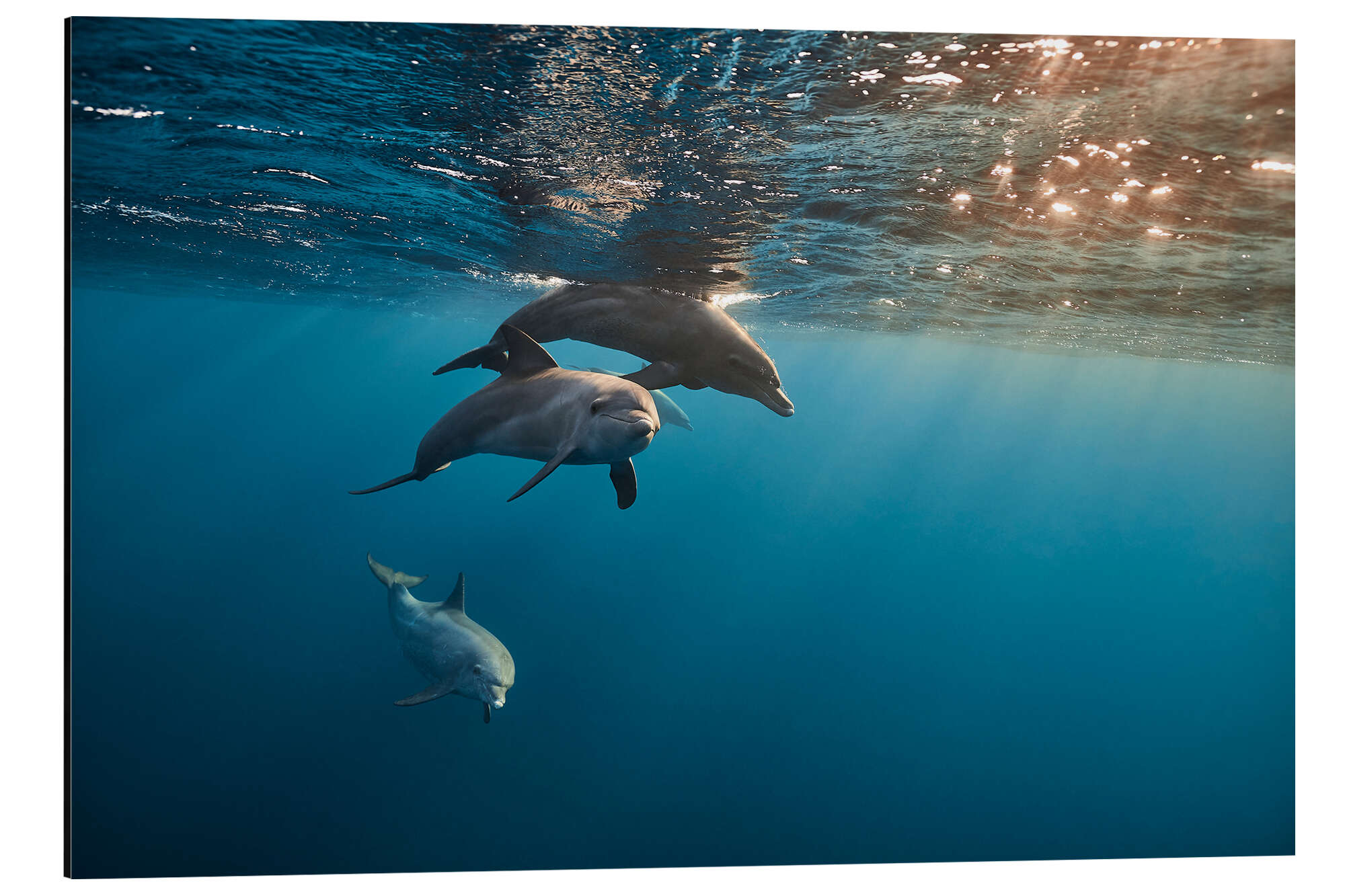 Posterlounge   Wandbilder   Blau   nitrogenic   Magnettafel Sonnenuntergang und Delfine
