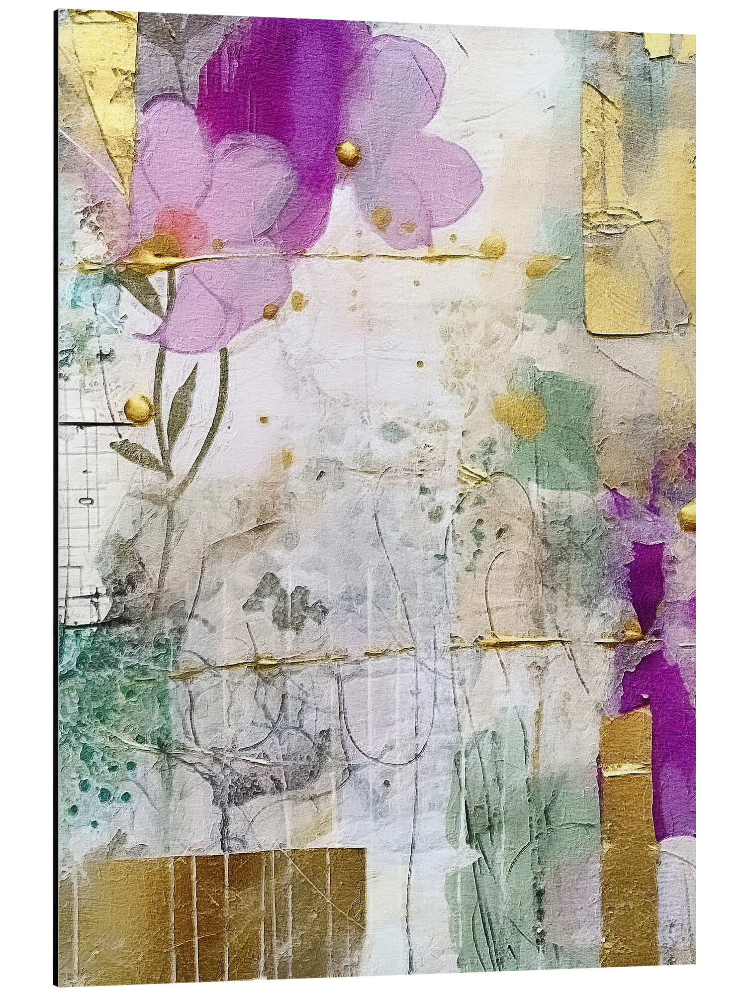 Magnettafel Goldene Flieder-Collage VIII