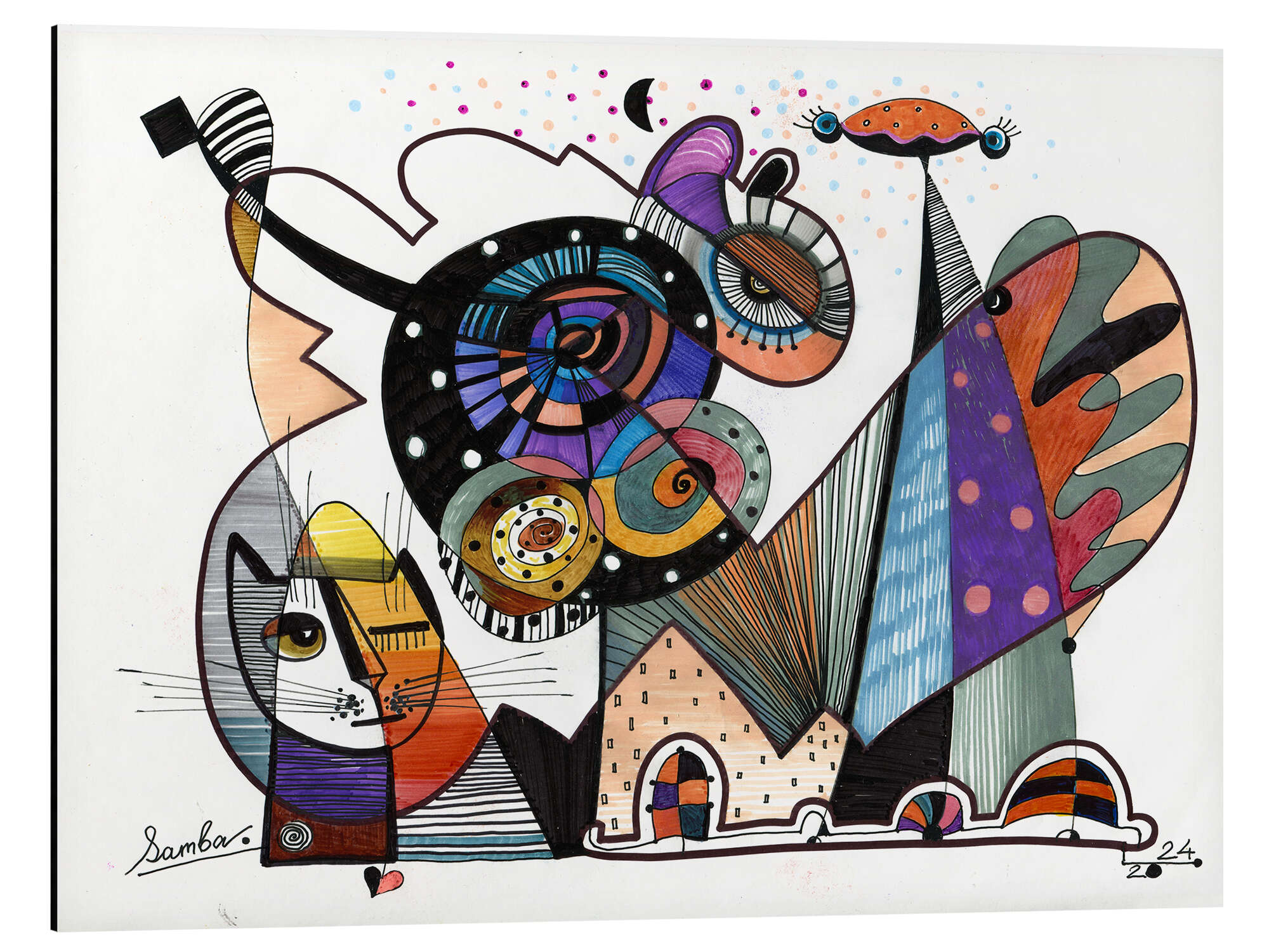 Posterlounge   Wandbilder   Illustration   Elena Samborskaja   Magnettafel Die imaginären Freunde unserer Katze