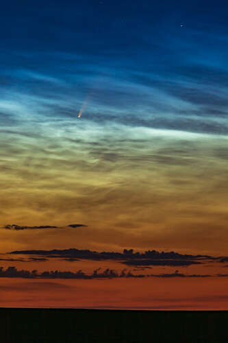 Magnettafel Komet NEOWISE inmitten nachtleuchtender Wolken am Morgen